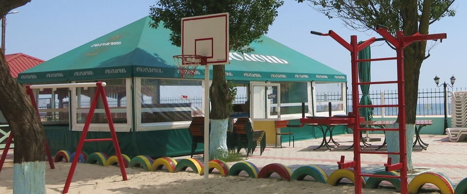 На пляже базы отдыха Адмирал Вы найдете шезлонги, зонтики, водные развлечения (горки, скутера), волейбольную площадку.