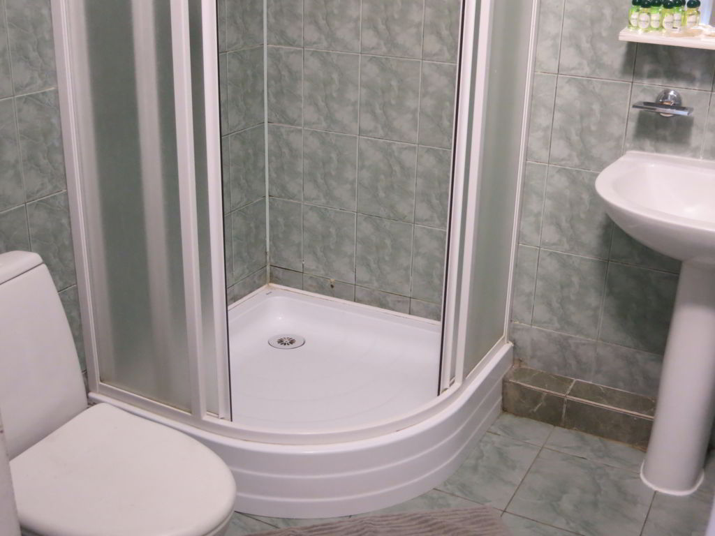 - санузел (душевая кабина, туалет, умывальник, полотенца, косметические наборы, горячая вода постоянно);