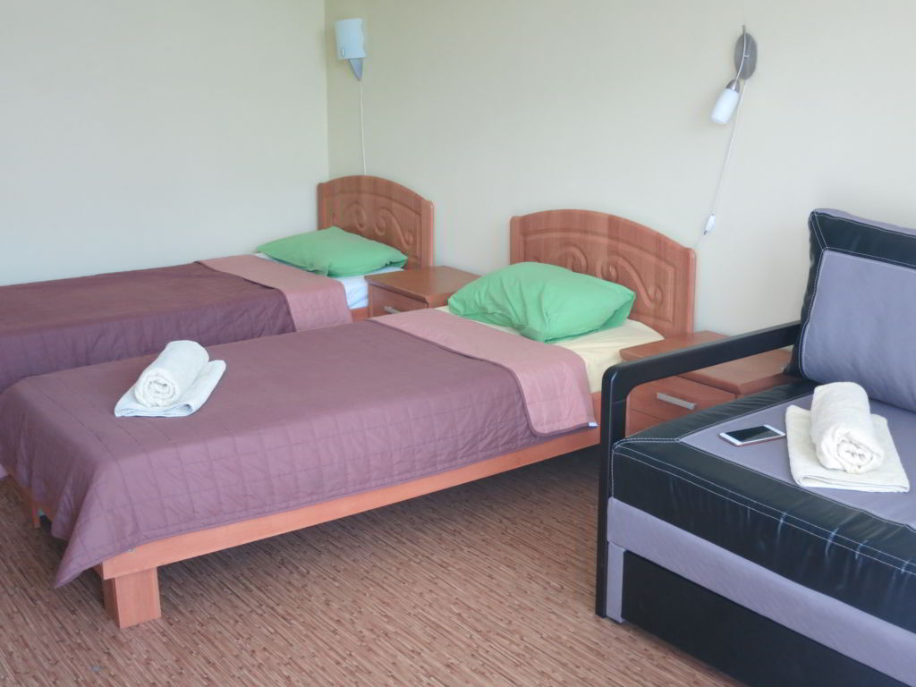 2-3-х местные номера со всеми удобствами в капитальном корпусе: кондиционер, холодильник, тв, индивидуальный просторный балкон с мебелью и др. в каждом номере.