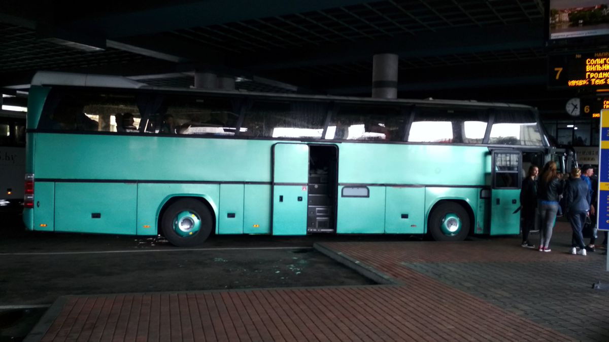 • Neoplan N116 - белоснежная красавица на 51 место, это мы стоим на границе